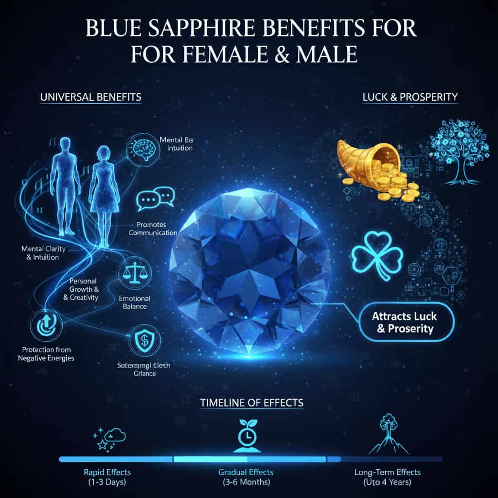 Sharpens Intuition: Blue sapphire is deeply associated with enhancing intuition and psychic abilities which makes it immensely beneficial for females who are seeking to strengthen their inner wisdom and insight.