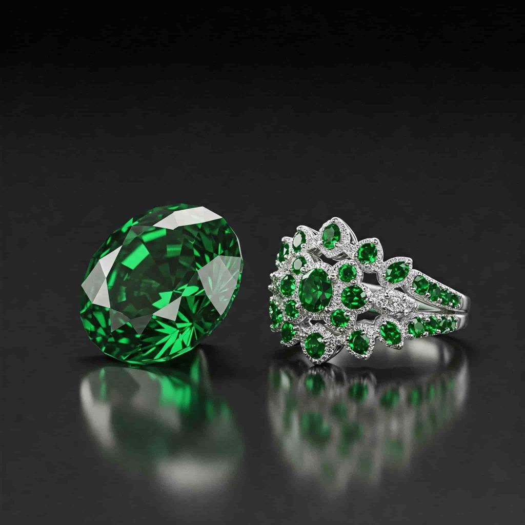 Emerald, one of the most iconic natural green gemstones, belongs to the beryl family and is treasured for its rich, vivid green hues. Its color stems from trace amounts of chromium and vanadium in its crystal structure. natural green Emeralds range from light green gemstones with a fresh, grassy tone to dark green gemstones with deep, velvety saturation. Prized for their rarity, these gems often contain natural inclusions called “jardin,” which add character. As one of the classic green gemstone names, emeralds symbolize renewal and are popular in high-end jewelry.