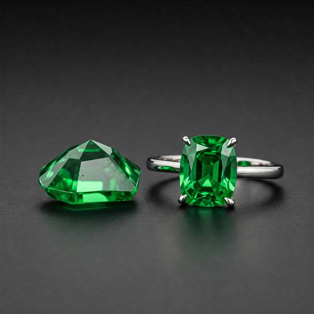 As one of the most brilliant natural green gemstones, tsavorite has a refractive index higher than emerald, giving it exceptional sparkle and fire. These dark green gemstones typically occur in smaller sizes, with specimens over 2 carats being exceptionally rare and valuable. Tsavorite’s durability (7-7.5 on the Mohs scale) makes it suitable for everyday wear in various jewelry applications.