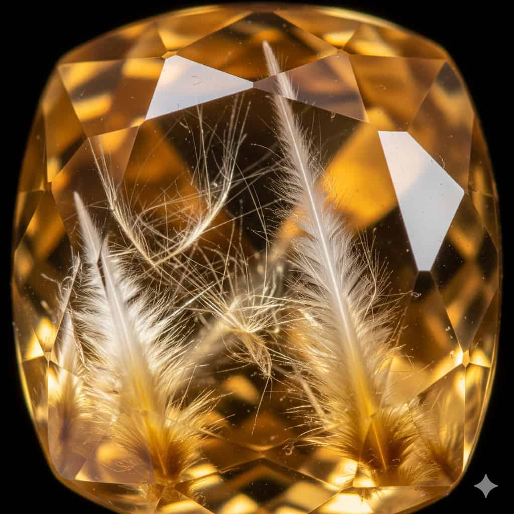 Citrine’s Mohs hardness of 7 means it can scratch glass but will be scratched by harder materials like topaz (8) or sapphire (9). To test: