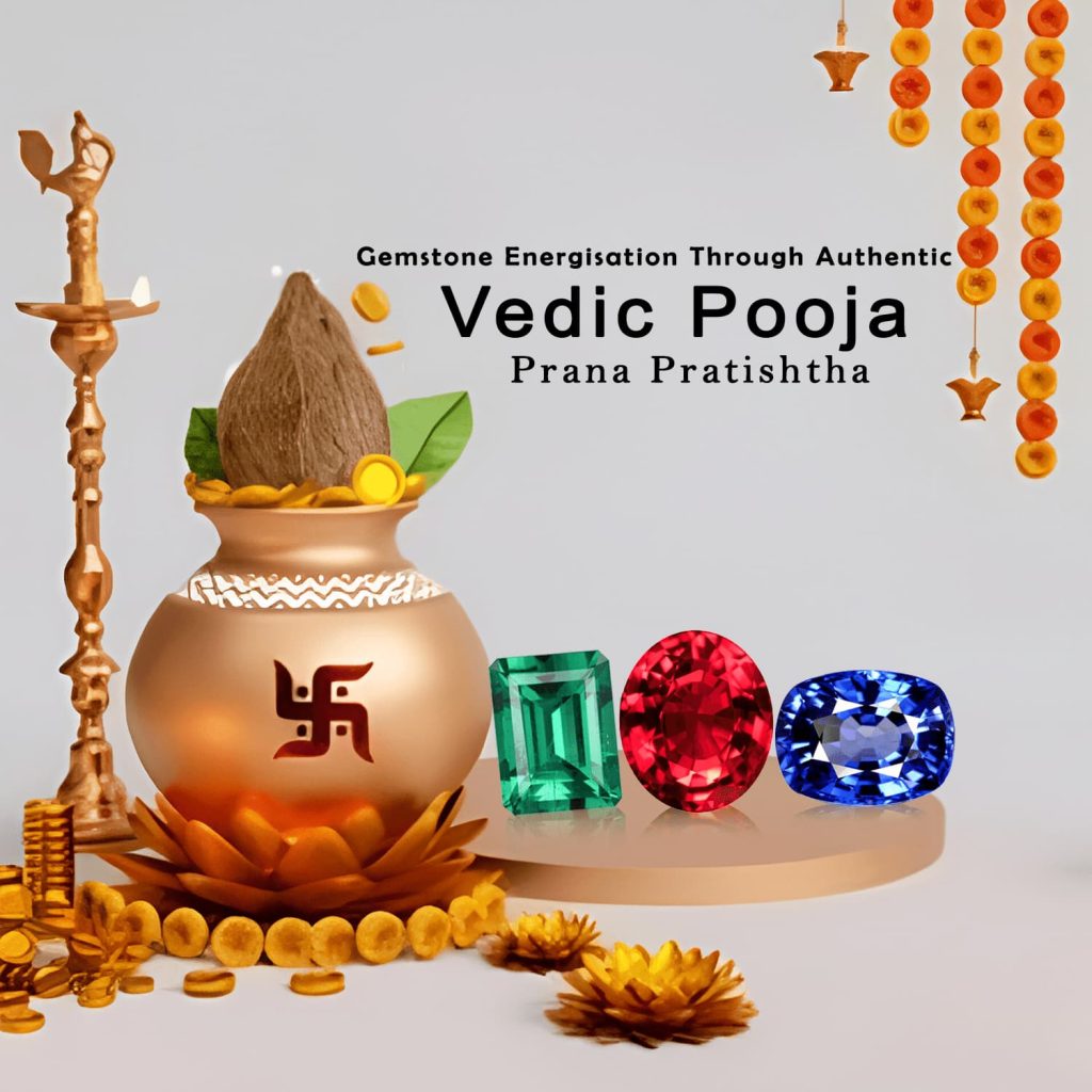 Embarking on the journey of Vedic Pooja for gemstones is an enchanting fusion of spirituality and earthly treasures, encapsulating millennia-old traditions rich in symbolism and reverence. Rooted in ancient Indian scriptures, Vedic Pooja, a ceremonial worship practice, harmonizes the energies of the cosmos with human existence, and gemstones hold a special place within this sacred framework. In this blog post, we delve into the intricate art of performing Vedic Pooja specifically tailored for gemstones, unlocking the mystical potential they harbor.