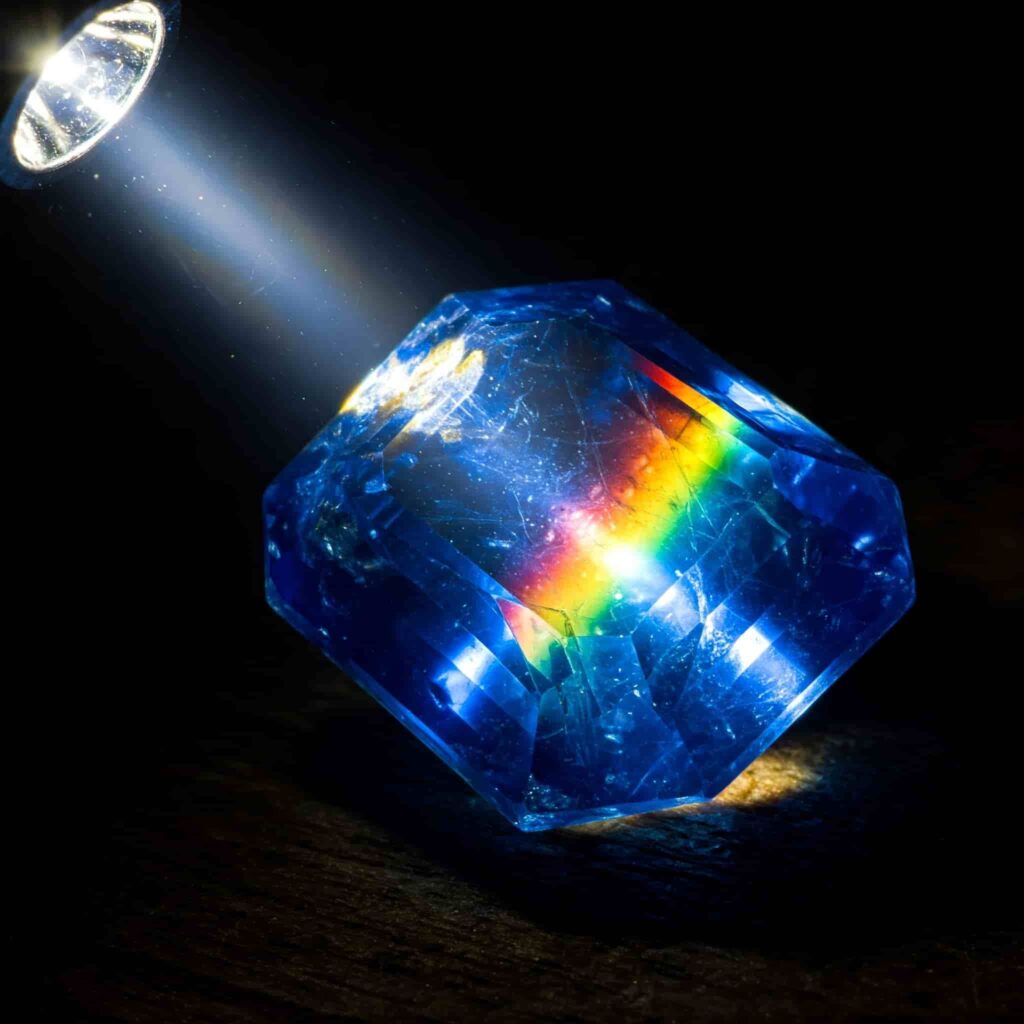 Sapphire gemstones are widely acknowledged for their intense color and uniform distribution of the color as well. Light test is one of the surefire ways to identify if a sapphire stone is real or not. To perform this test, you need an intense light source and a gemstone. Turn off the light in your room and focus the flashlight on the sapphire gemstone.