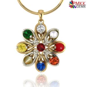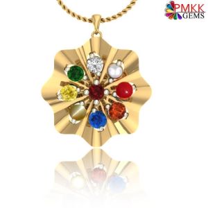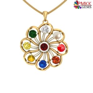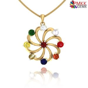 2. Navaratna Pendant In 18Kt Yellow Gold